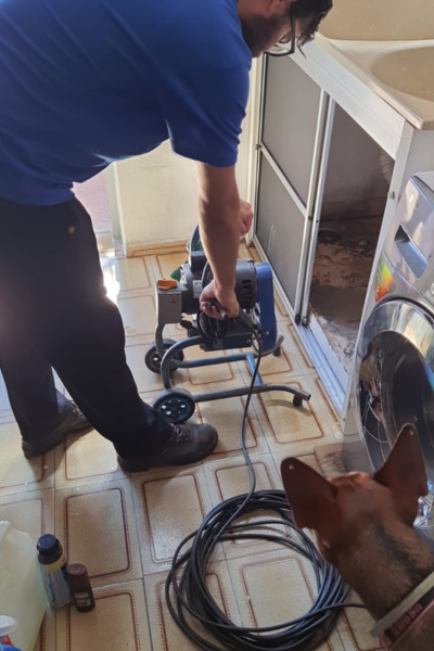 É o processo de remover obstruções no encanamento que impedem o escoamento da água, causado por resíduos como gordura, restos de alimentos e sujeira.